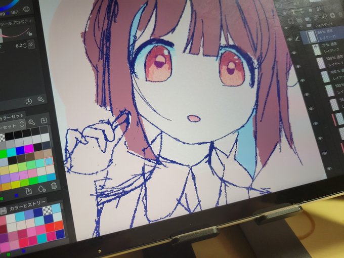 1 1 もみじ ラフはなんとなく出来た 青メッシュはやっぱいい… #おにまいお絵描き 23/04/08 01:37