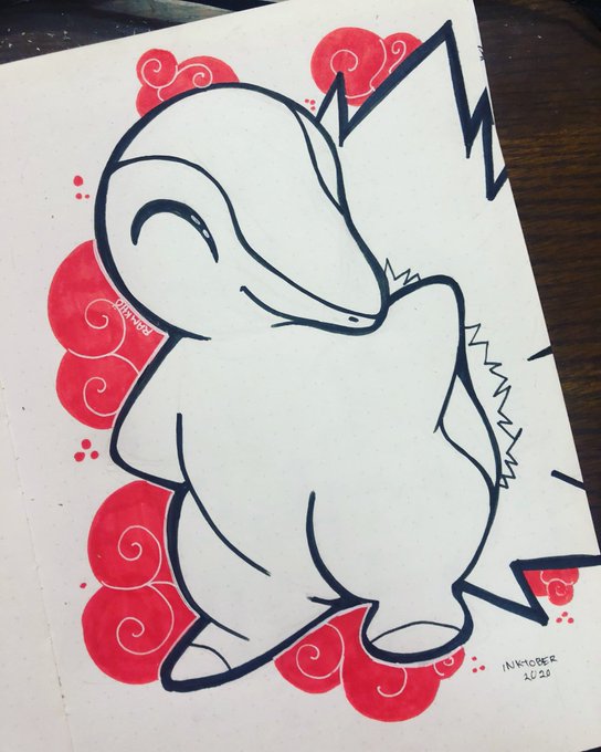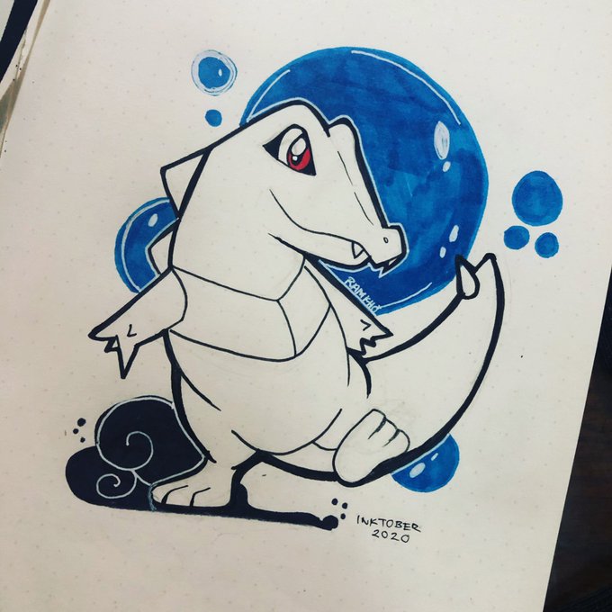 Día 8 del @inktober y tocaba “dientes” por eso hice a totodile!!! Espero les guste !!! ( todos los errores los voy a corregir en la versión digital!!! #inktober2020 #inktober #inktober2020day8 #Pokemon #totodile