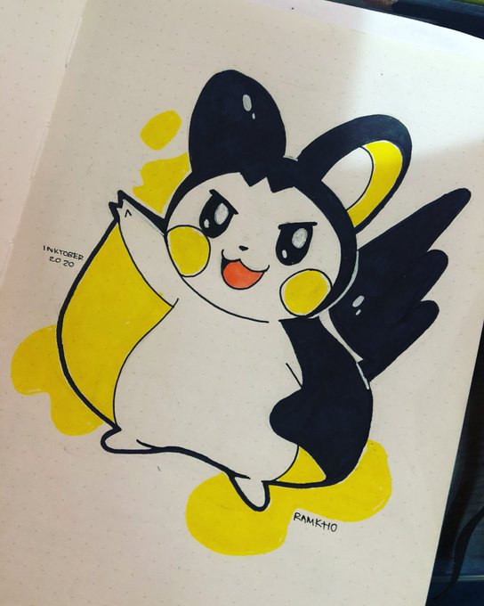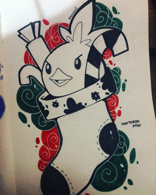 Día 6 del @inktober en la lista oficial de @jakeparker toco “rodent” y pues hice un gordo emolga que no me quedo tan bien pero me gusta su cara. #inktober #inktober2020 #inktober2020day6 #pokemon #emolga