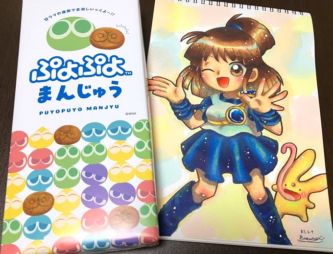 ぷよぷよまんじゅう買った記念に通アルル描きました