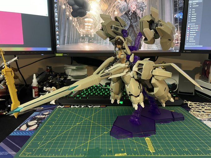 Finished this massive girl. MG barbatos for scale #megamidevice #kotobukiya #plamo #メガミデバイス #ガンプラ #アリスギヤ