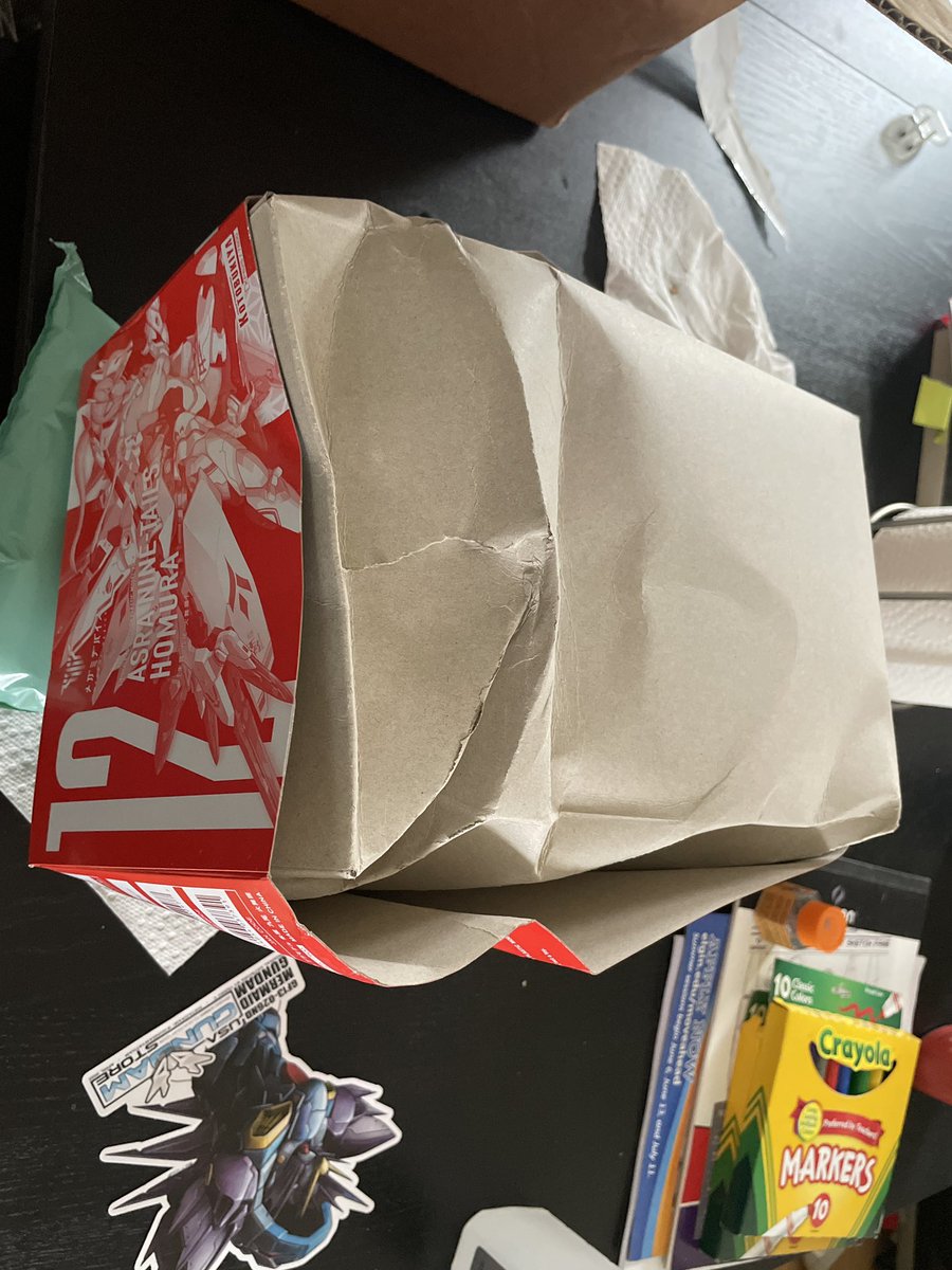 It looks like some kicked my package. Also it looks like some of the water slides got some creases in them :#kotobukiya #megamidevice #usagundamstore #usags #plamo