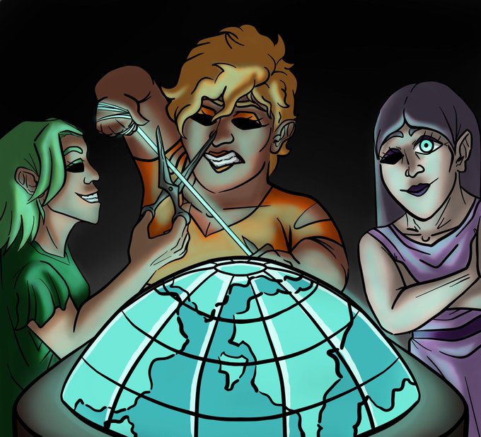 October 13th, I drew the fates from greek mythology with a secondary color base #art #artist #artwork #create #creative #creativity #drawing #drawings #fantasy #fantasyart #dnd #dndart #halloween #halloweenart #halloweenartwork #horror #HorrorArt #horrorartwork #greekmythology