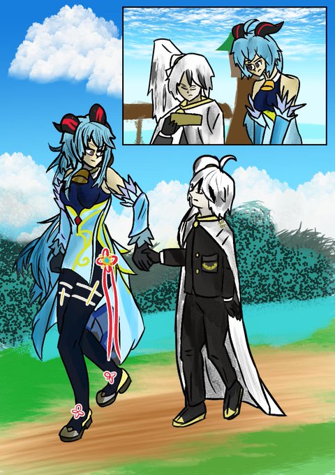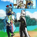 Yan (Library of Ruina) holding hands with Ganyu (Genshin Impact) #genshinimpact #libraryofruinafanart #genshinimpactfanart #yanlibraryofruina #libraryofruina #libraryofruinayan #genshinganyu #ganyu #yan #libraryofruina #projectmoon #genshinimpactganyu