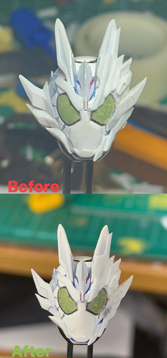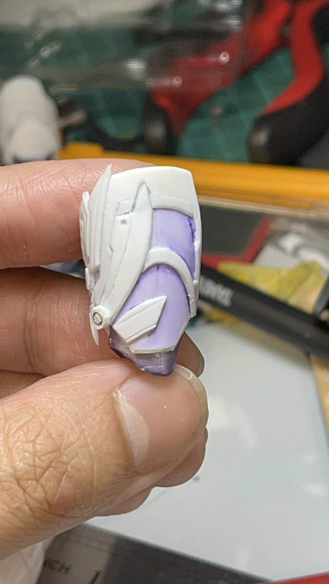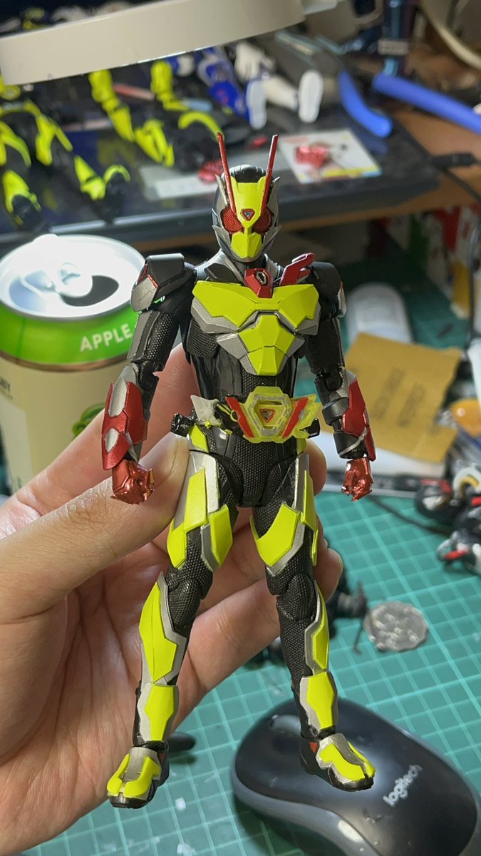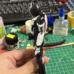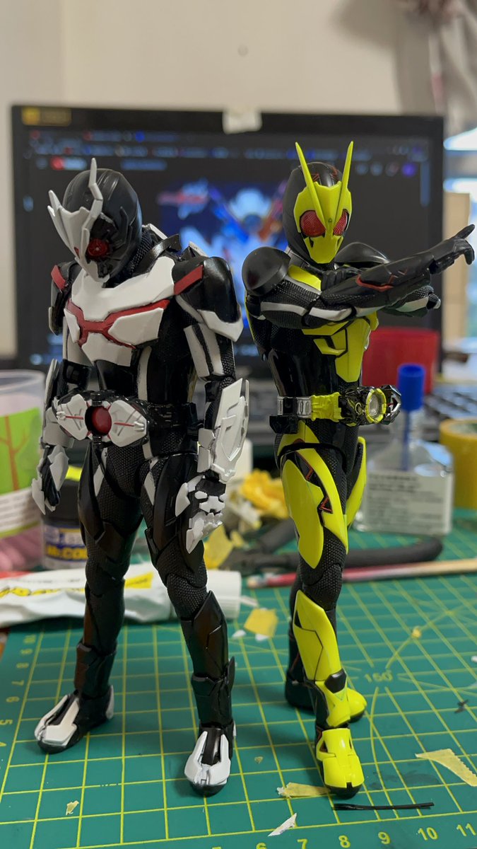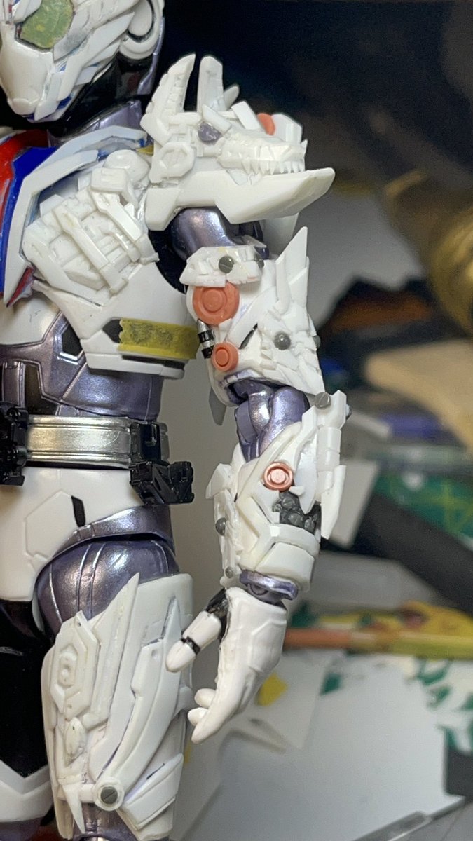 マスク幅増し、胴体独特、肩アーマ接続、膝関節の修改が完了です 残るのは明日でやる スーツのカッコ良さを再現するため毎回もこうやって修改して流石に僕だって疲れますわ しっかりしてくださいよバンダイさん🤢 #ニチアサフィギュア改造部