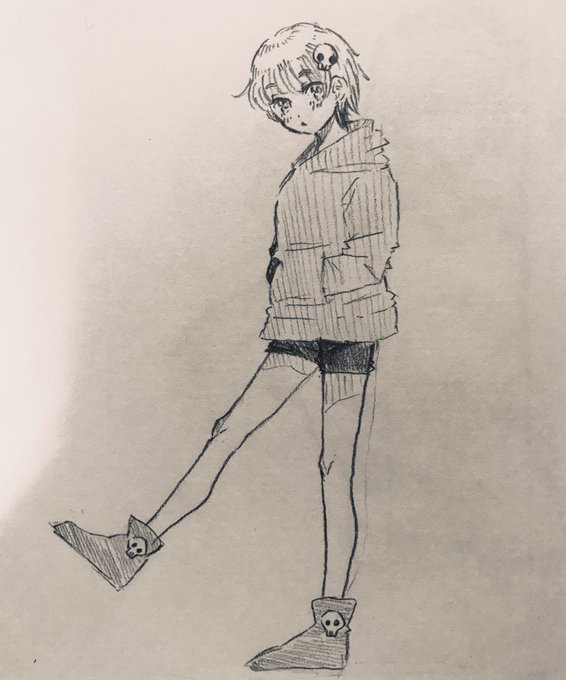 1 53 #しにがみあーと だぶだぶパーカーを着たしにがみさんを描きました 21/11/02 17:32