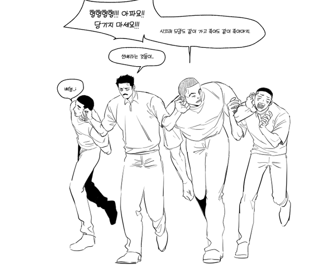 전에 생각했던 도감독이 도망친 애들 잡아왔을 때 어떤 느낌이었을지 ㅋㅋㅋㅋㅋㅋ 도감독 손엔 현철이랑 명헌이 현철이 손엔 우성이 일 것 같은 ㅋㅋㅋ 줄줄이 굴비마냥 올 것 같다