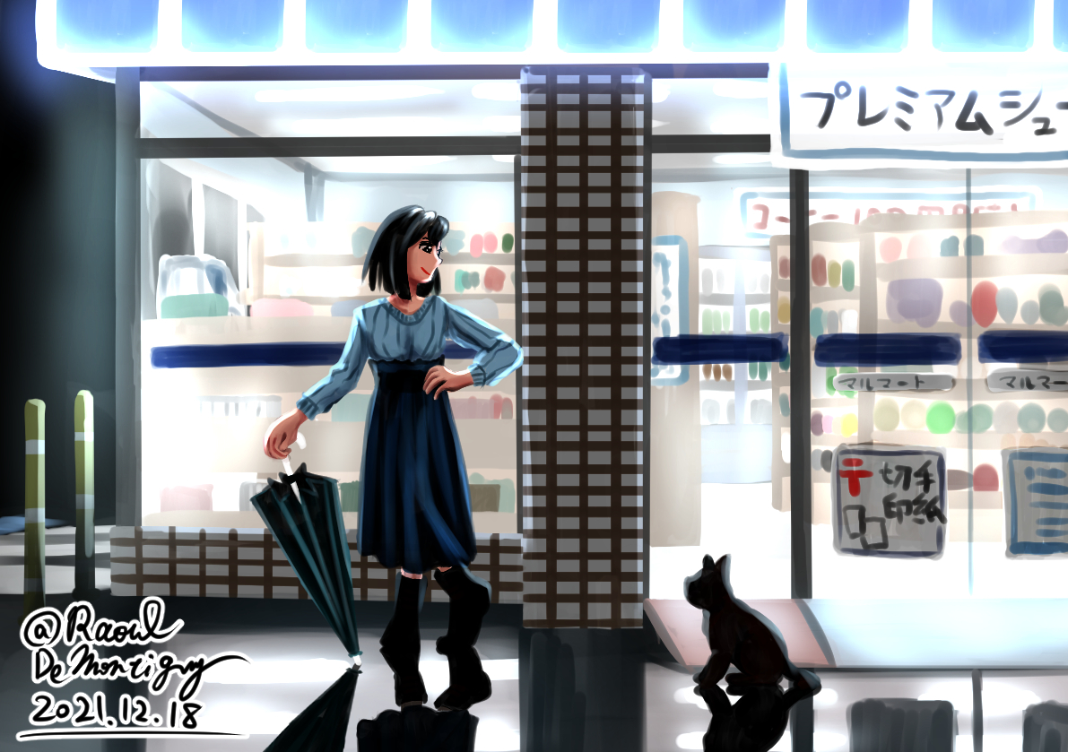 エアリス、誕生日おめでとう! やっつけ背景だけど、定規を使わず全部フリーハンドで描いてみたよ。だけどミッドガルっぽく描くのはとても難しくて、あれこれ考えてるうちに時間切れ…💦 #エアリス生誕祭2023 #エアリス誕生祭2023