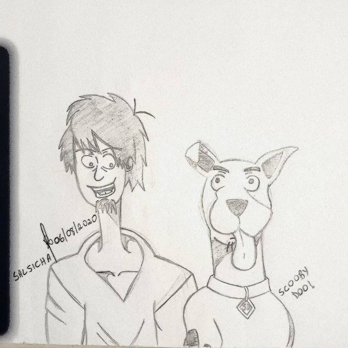 1 4 Esboço descontraído por causa do novo filme do Scooby-Doo que lançou! Parte da infância! #scoobydoo #salsicha #scooby #ScoobyOFilme #shaggy #hannabarbera #fanart #sketchbook #sketch #drawing #desenho #NobodyArtistClub #faceyourartchallenge 20/08/07 09:51