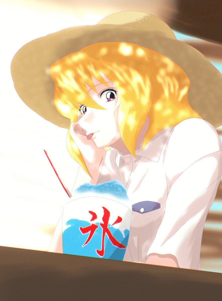 ステラ祭が明日で終わるので何か描きたいな〜と思って描きました 数日前の暑い日にちっちゃい子がかき氷食べてるのを見て「かき氷......いい」と思って描き始めたんですけど、後先考えず描いてたらこうなりました 色塗り飽きてしまって適当に塗ったんで、ここに供養します🙏