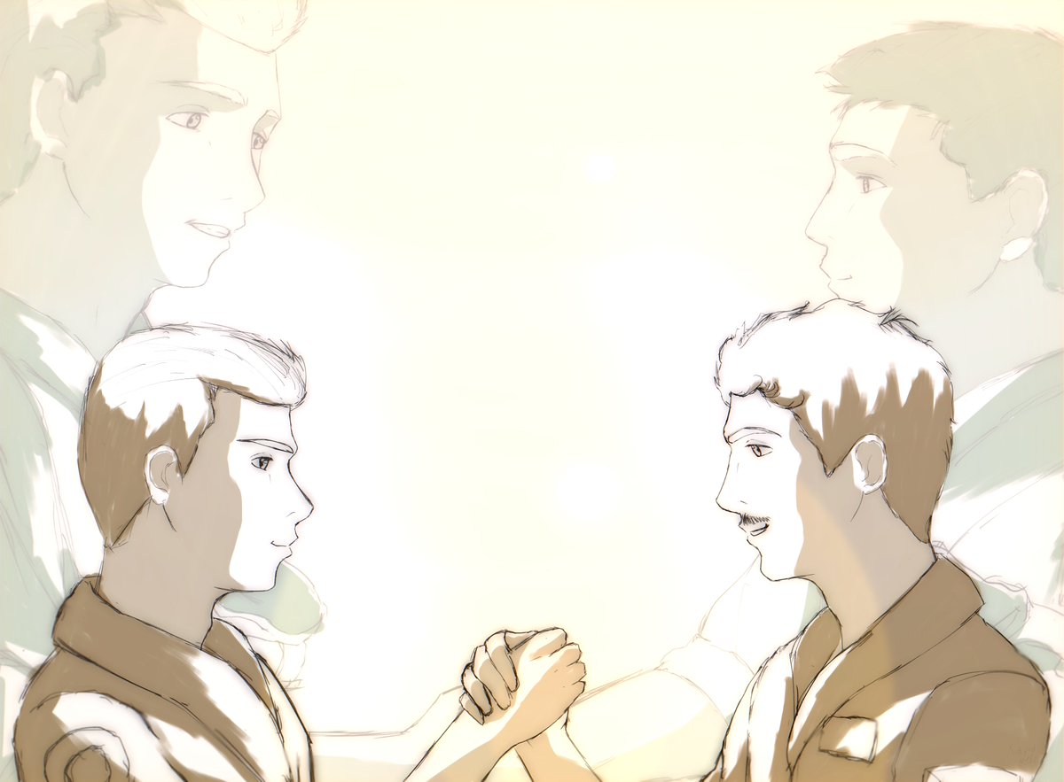 #今月描いた絵を晒そう 真面目なのとネタ絵 100ふぁぼ超えて嬉しかったけど、平井構図は改善の余地ありですな😊