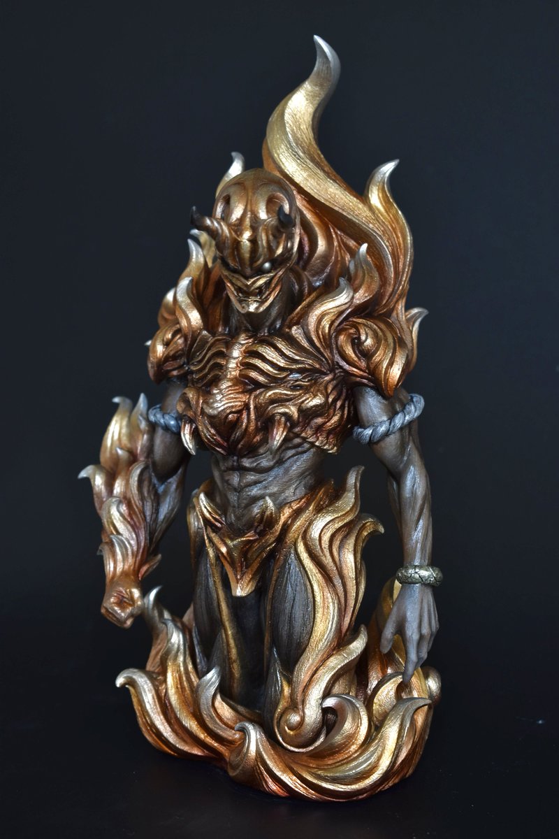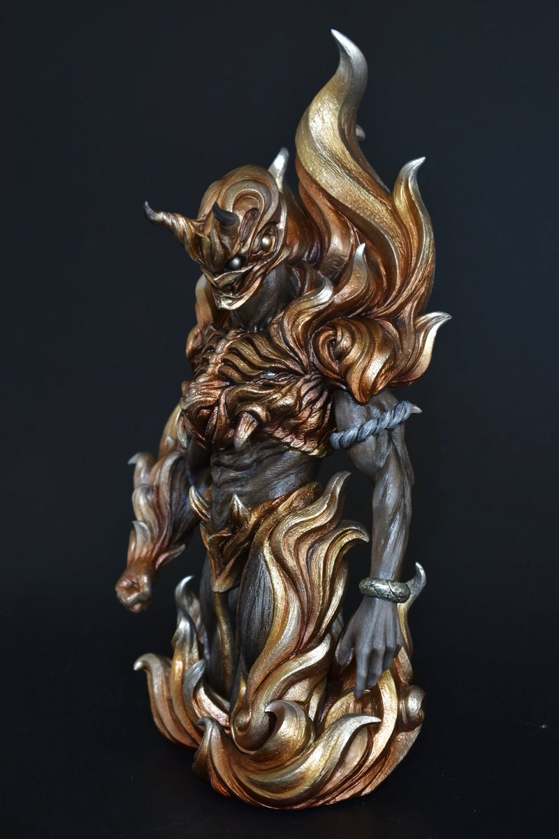 #オリジナル作品 『炎虎』完成です! メタリックは広範囲に使うと安っぽくなりがちな印象なので、少し燻んだ感じの金を意識してみました。 流れのある造形をこだわったので誰かの感性に刺されば嬉しいです! こちらは #WF2023S にて展示予定です! 工房RasEN WF2023S 5-18-26 #オリジナルデザイン