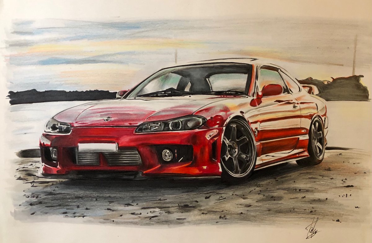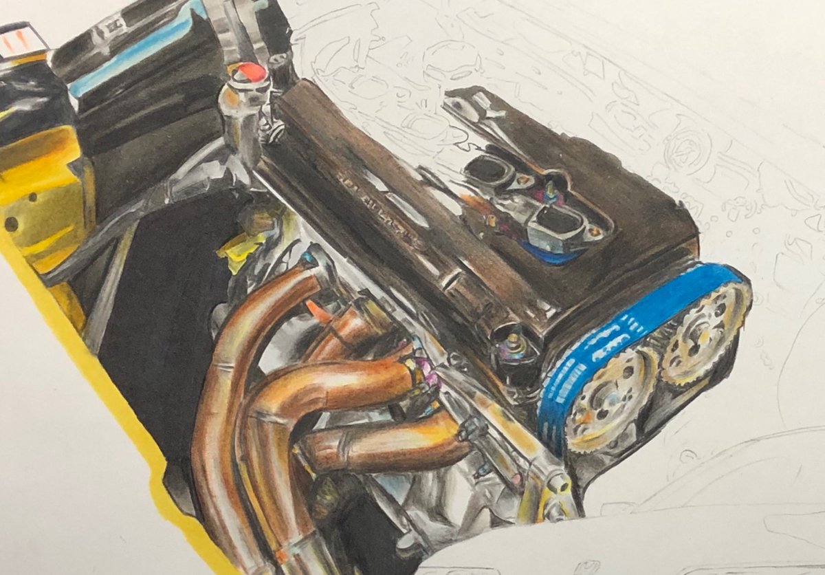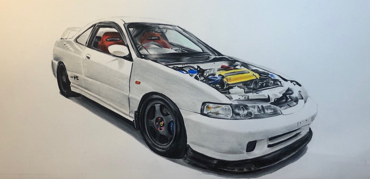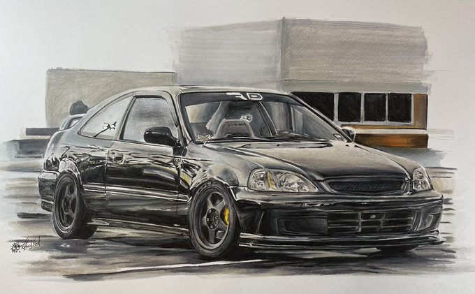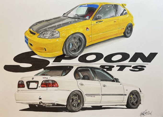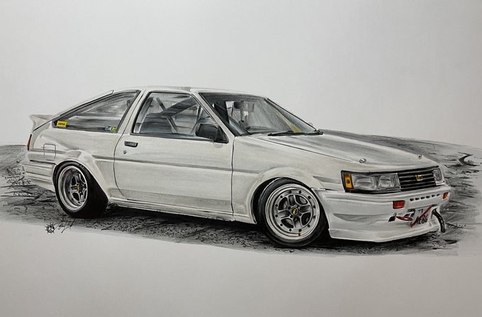 #絵描きさんと繋がりたい すごーくまえに1週間かけて描いたのがこのサンクターボ そして最近 3日で描いたインテグラ 成長してるんだなって実感してる