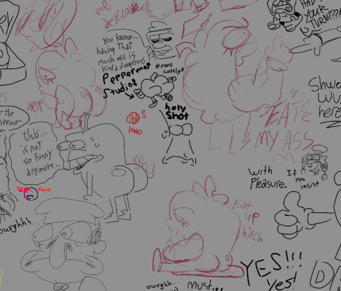 funny sketches on the artboard. We got: -increasing ass size pepperman -beefed up gerome featuring @BigBeastCyrus and @namesaplenty07 #pizzatowerfanart