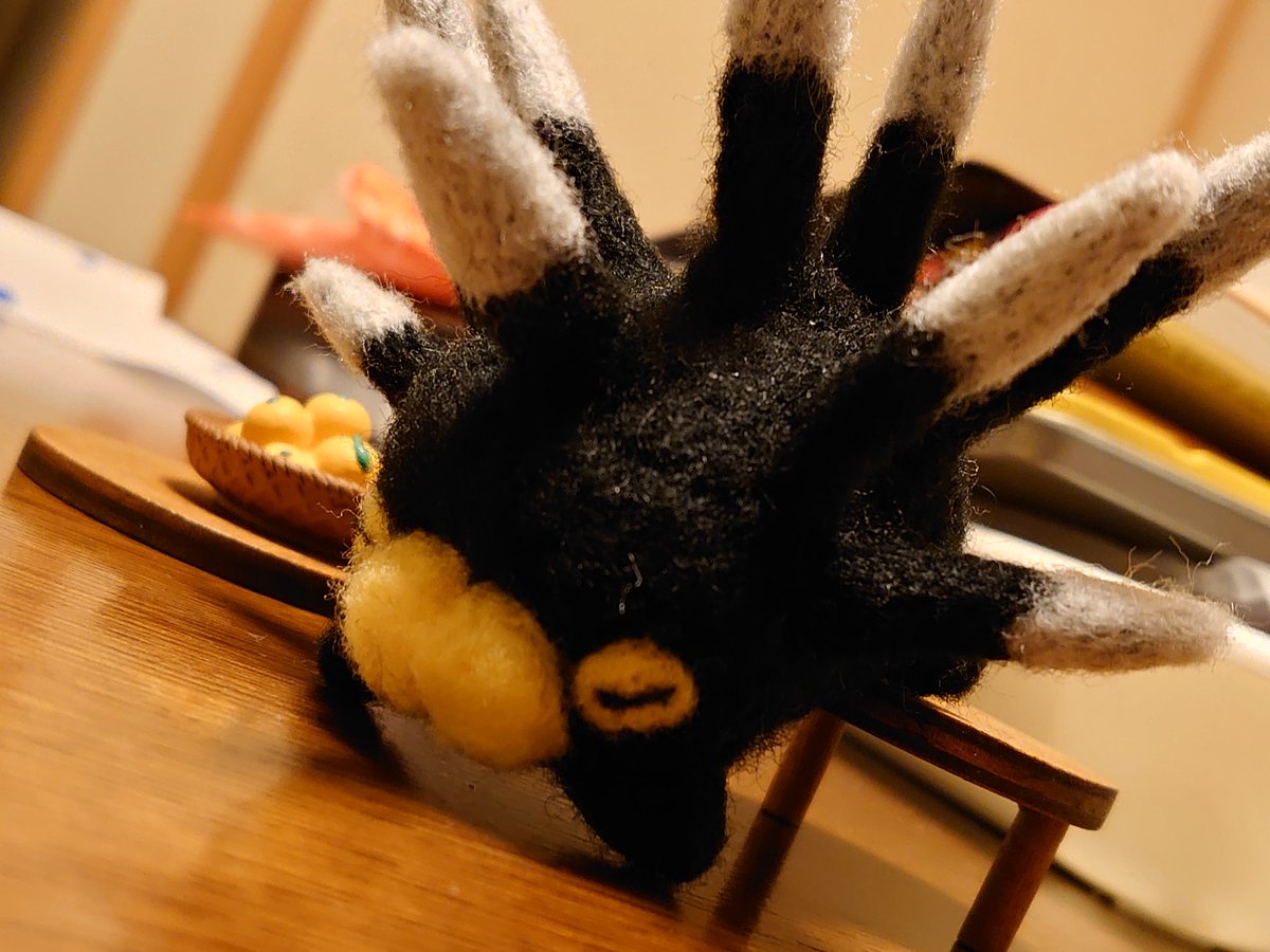 バチンウニできた~…!✨ 疲れたので遊んじゃう…!(^ω^) #羊毛フェルト #ポケモン #バチンウニ
