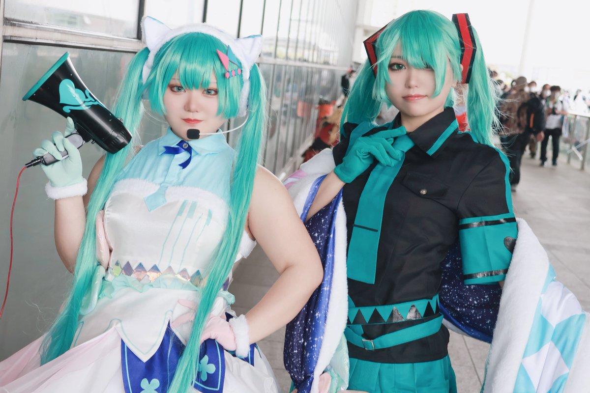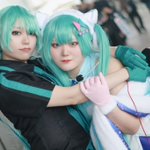 ニコ超で撮ってもらった半分おふざけショットです📷 撮影の合間合間で爆笑してるんだけど、撮られる時はしっかり顔作る2人組 恋戦ミク→@kurun1810 📸→@693hi693 #ニコニコ超会議2023 #ニコニコ超会議2023コスプレ