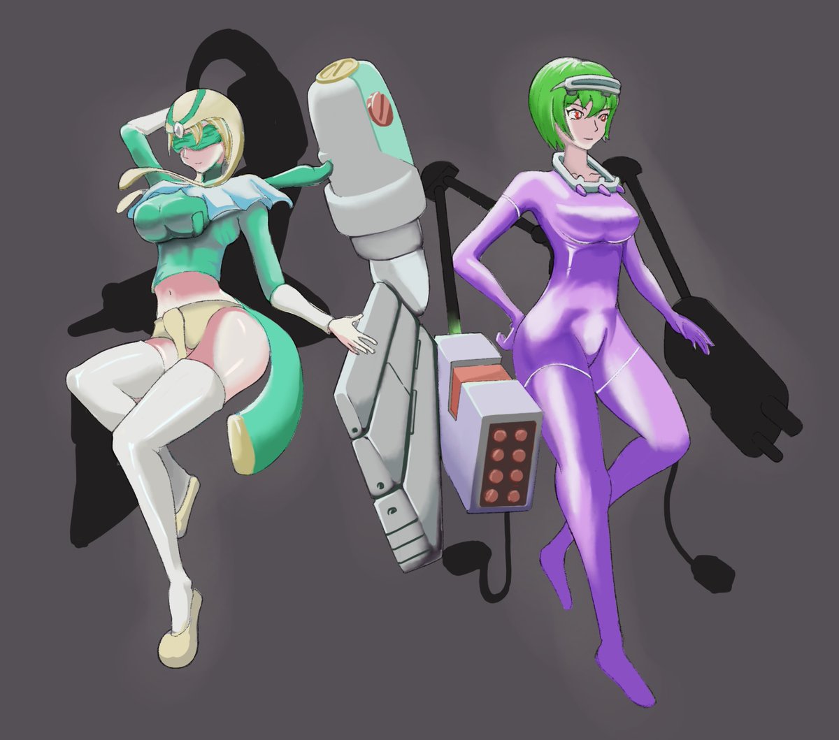 #今月描いた絵を晒そう 推しメダロットとパーティクルの擬人化絵です、描きたい絵はまだまだある