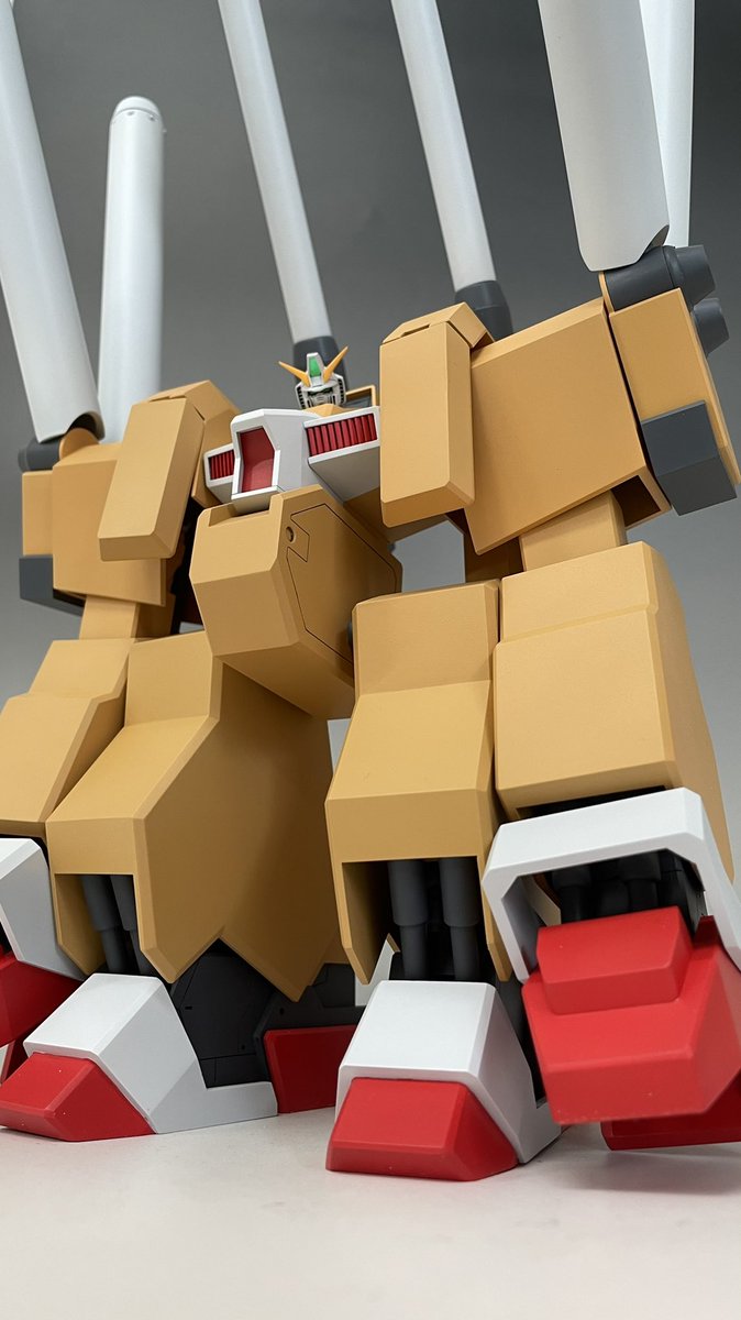 #これ作るの大変でしたプラモ グランドガンダム確定 材料探しから使える既存のガンプラの選定、手足の装甲の面毎に1mmプラ板3枚積層してから接着。四足モードやグランドマスターへの変形、合体機構の内臓。 グランドボンバーに見合うプラパイプを最後まで探し歩ってなんやかんやで半年かかった