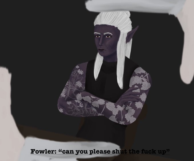 Fowler 🥰🥰🥰 Ive never drawn Fowler when he is actually normal and not crying or depressed but i promise he is actuslly a badass #dnd #ravenqueen #dndart #dndcharacter #commissionsopen #dndoc #dnd5e #duskelf #elf #dndelf