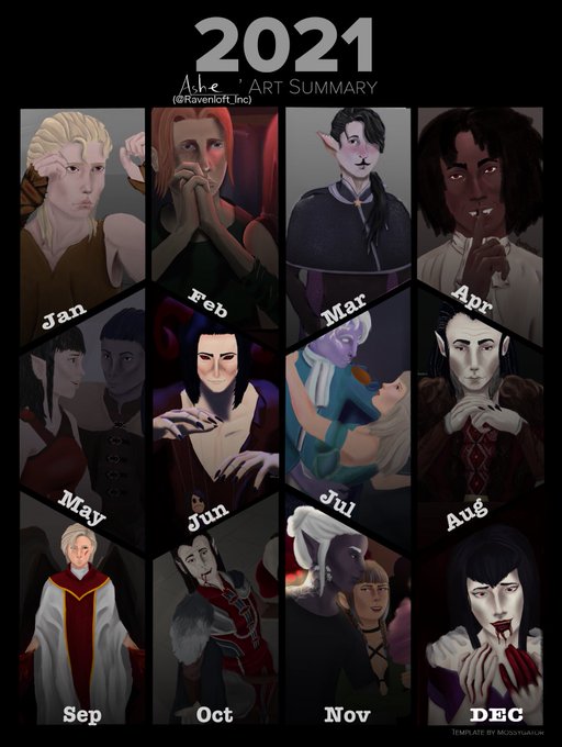 Art summary for 2021!!! Can't wait to redraw January's piece when 2022 hits so we can see some improvement Template by @mossygator_ pls untag them in replies <3 they dont want to be spammed #Artsummary2021 #artist #illustration #digitalart #artimprovment