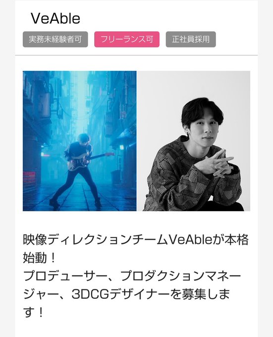 僕の主催するVFX映像ディレクションチーム「VeAble」 本格始動・業務拡大に向けて、このたび ・プロデューサー/PM ・3DCGデザイナー/コンポジター/モーショングラフィクスデザイナー を募集します! 詳細は下記リンクよりご確認ください。ご応募お待ちしております!! cgworld.jp/jobs/30709.html