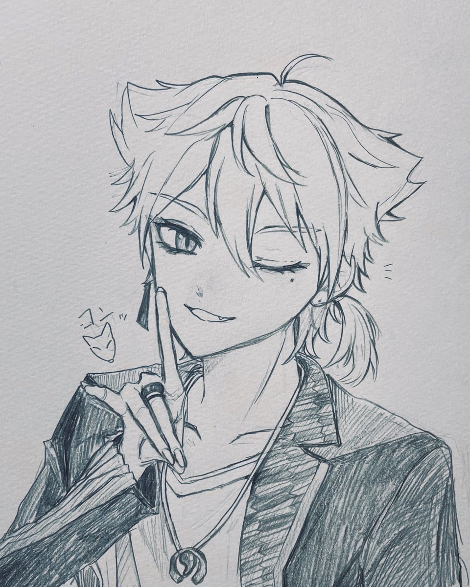#絵ガク 4日目なので手で狐を作っている伏見🦊!
