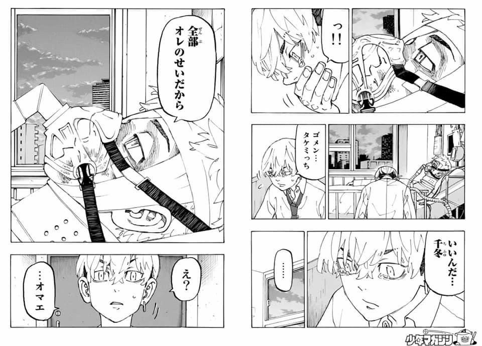 Tokrev 234 ⚠️ จิฟุยุ : นาย… ได้เจอดราเค่นคุงในอนาคตใช่ไหมล่ะ? แล้ว… ทำไมเขาถึงตายล่ะ? ทุกคนกำลังไปได้ดีแท้ๆ ทำไมถึงกลับมาล่ะ!? เพราะนาย ดราเค่นคุงถึง!!! จิฟุยุ : อึก!! ขอโทษ… ทาเคมิจจิ ทาเค : ไม่เป็นไรหรอก… จิฟุยุ ทั้งหมดมันเป็นความผิดของฉันเอง จิฟุยุ : เอ๊ะ? …นาย
