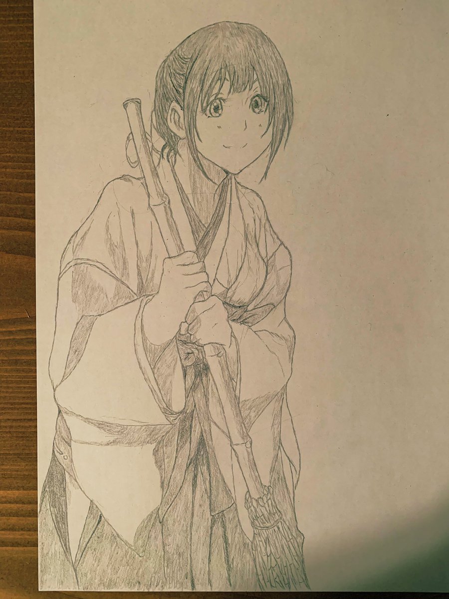 3 10 【描いてみた】遅ればせながら本日は #巫女の日 という訳で描いてみた。 鉛筆絵で仕上がりも雑なのでご容赦を… 22/03/05 23:05