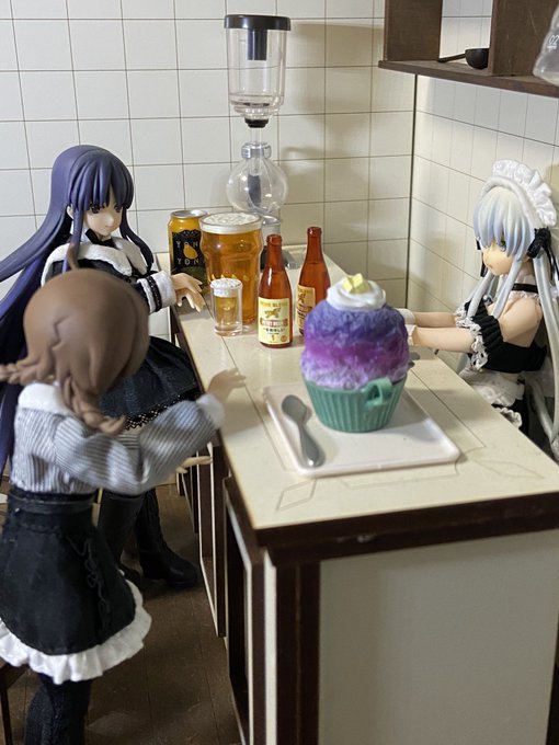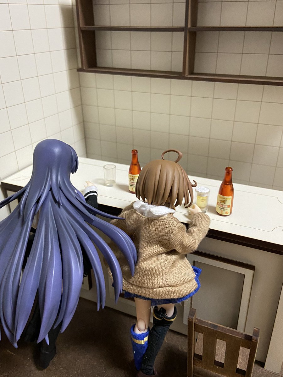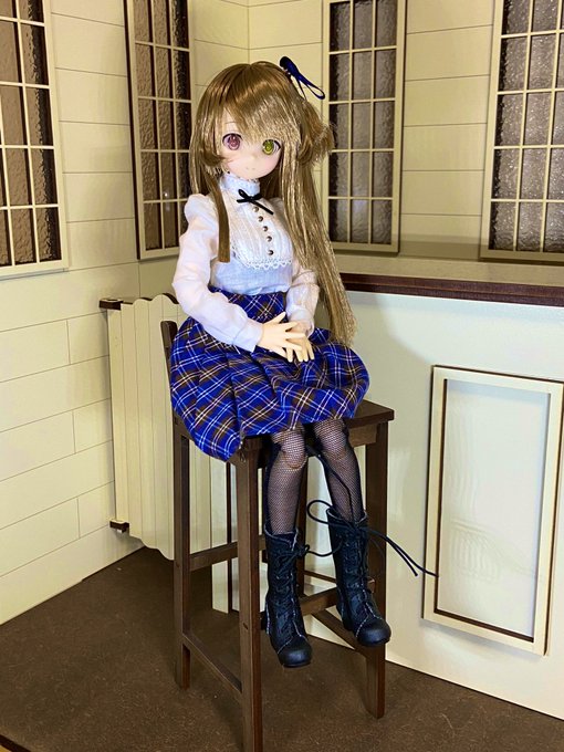 KKカンパニーからドールハウスが届いた! 1/12ドール対応って事で1/10買ったけど、カウンターに対して椅子が小さいな 1/6サイズの方は椅子のサイズあってるけど スタバ的な椅子が欲しくなってくるな #アサルトリリィドール部
