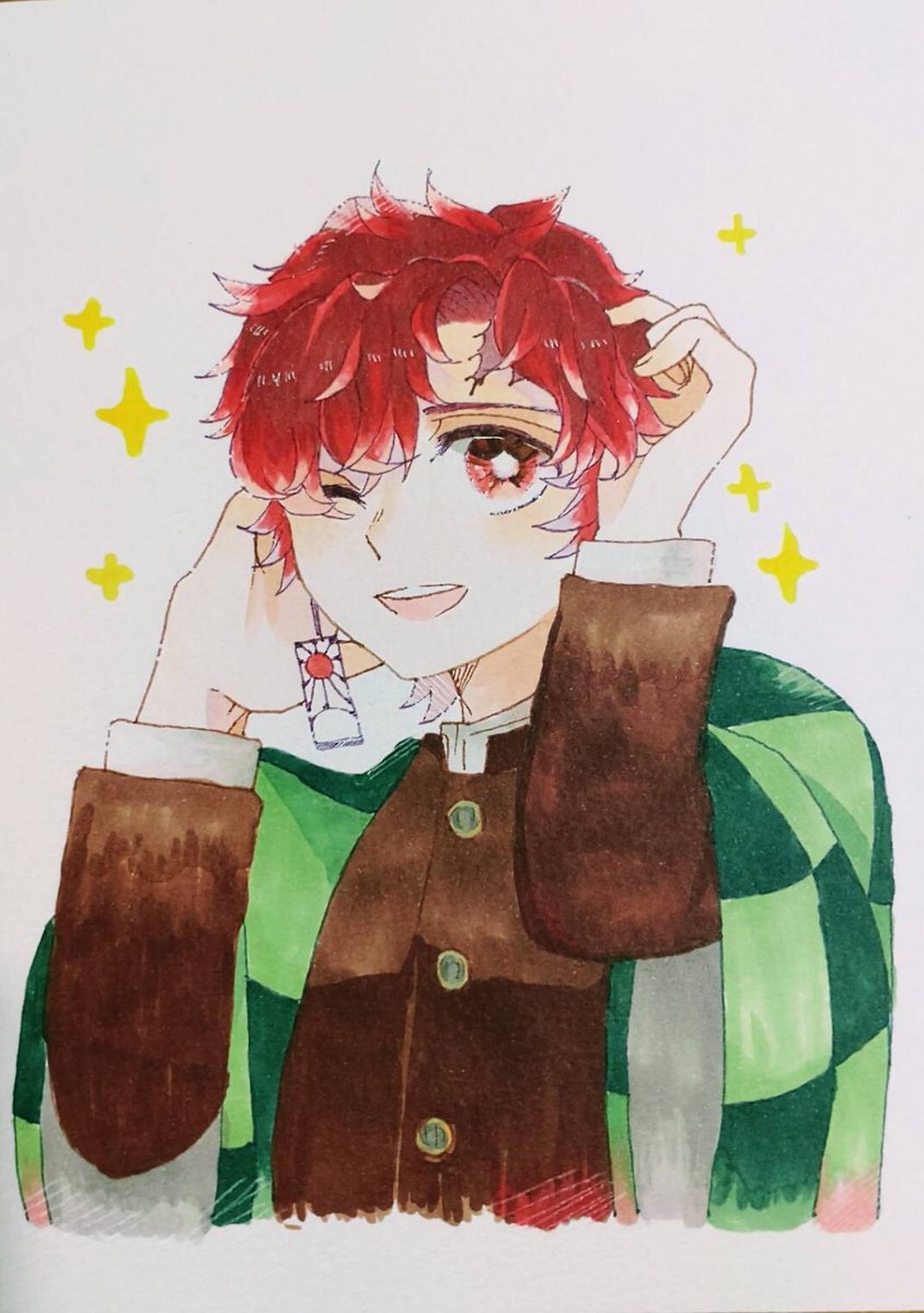 髪を下ろしてみたよ #炭治郎 #鬼滅の刃 #鬼滅の刃イラスト #鬼滅の刃ファンアート #コピックイラスト