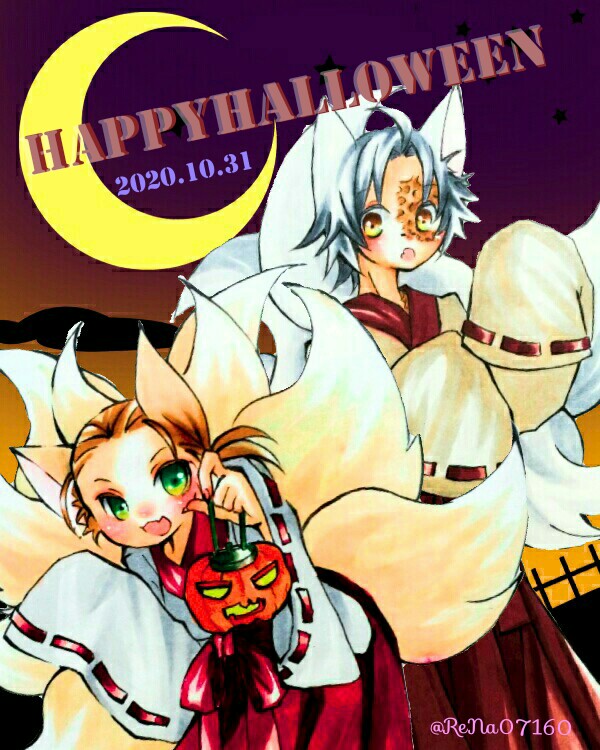 ☠🎃HappyHalloween🍭🍬 九尾と六尾の狐探傭 尻尾がデカくて顔に被っちゃうので手前のよへを被らないようにしたら大人と子供みたいなサイズに… #探傭 #ハロウィンイラスト #コピックイラスト #アナログイラスト #アナログ絵描きさんと繋がりたい #第五人格イラスト #第五人格絵描きさんと繋がりたい