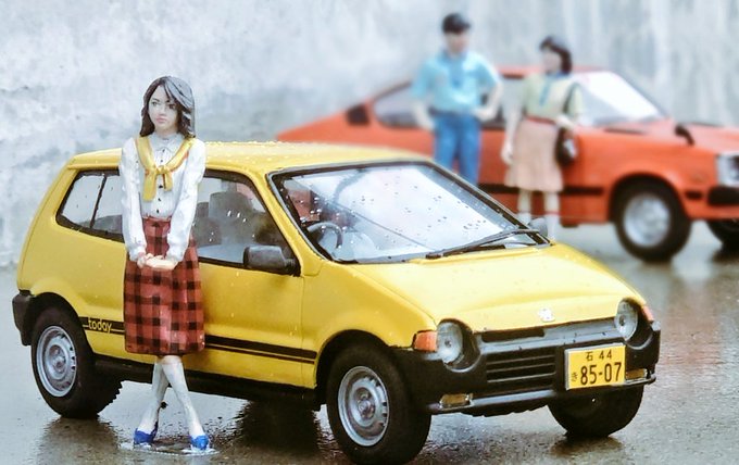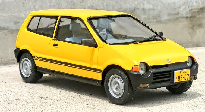 #あなたのみどり色の作品を見せてください #おいでよ自動車模型へ タミヤ1/18 ホンダNⅢ360、何年か前に再販されたものです。 ボンネットと両側ドアが開く豪華仕様で、二輪のものを転用した空冷4サイクル2気筒SOHCの360ccエンジンも再現されています。 助手席に置かれた南沙織のレコードに注目😆