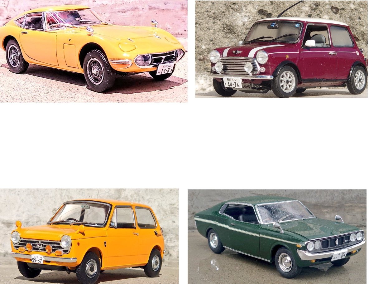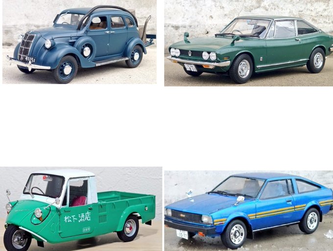#2023年自分が選ぶ今年上半期の4枚 ・オオタキ1/20 スズキ・フロンテSS ・ 〃 1/20 スバル R-2 ・クラウンモデル1/24 日産 キャラバン ・アカデミー1/24 起亜 ブリサ ……といういつも以上に濃ゆいのを作ってました🤣