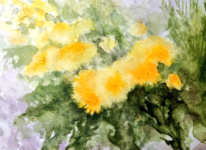 たんぽぽ #つらら庵お散歩スケッチ #透明水彩 細かく描かない練習🎨