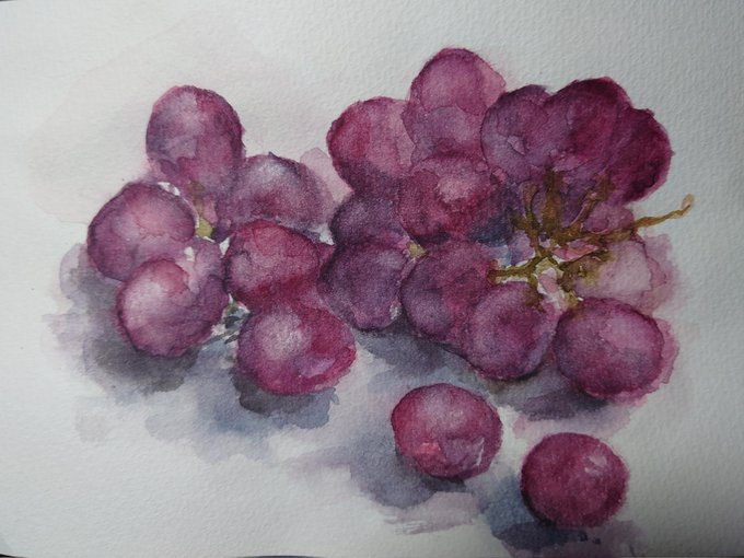 食べる前に🍇✍🏻(・ω・) #つらら庵おうちスケッチ #紙消費大作戦 #透明水彩画 陰影の付け方。明暗で捉える …難しい(ㅎ.ㅎ )。。。