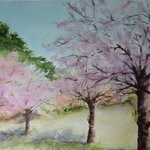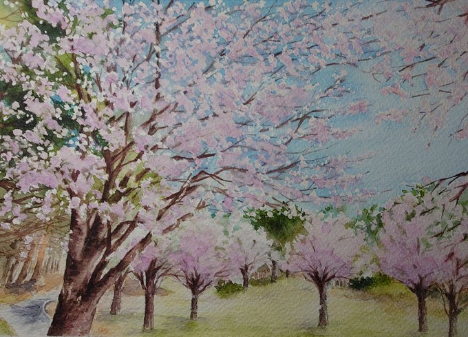 別アングル #桜 #透明水彩 #つらら庵お散歩スケッチ 若い桜の木たち。 少し足を伸ばせば まだキレイに咲いてます🌸