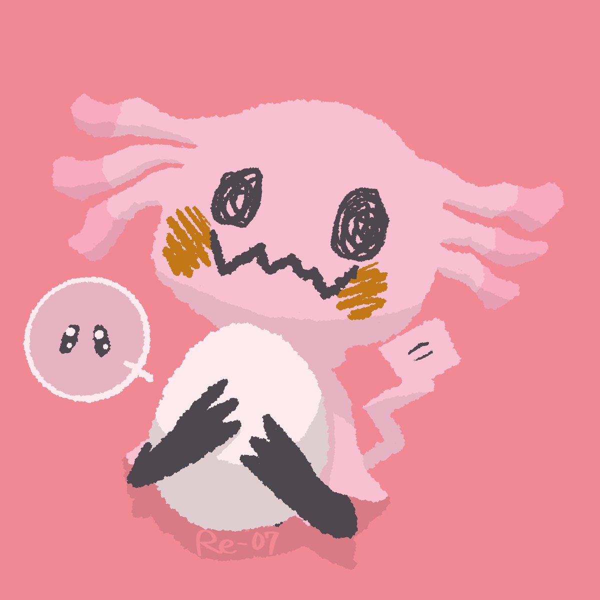 子どもからのリクエストで、ラッキーの布を被ったミミッキュ🎨 タマゴが大きくてお顔が隠れてしまった…の図🥚👀 #ポケモンイラスト