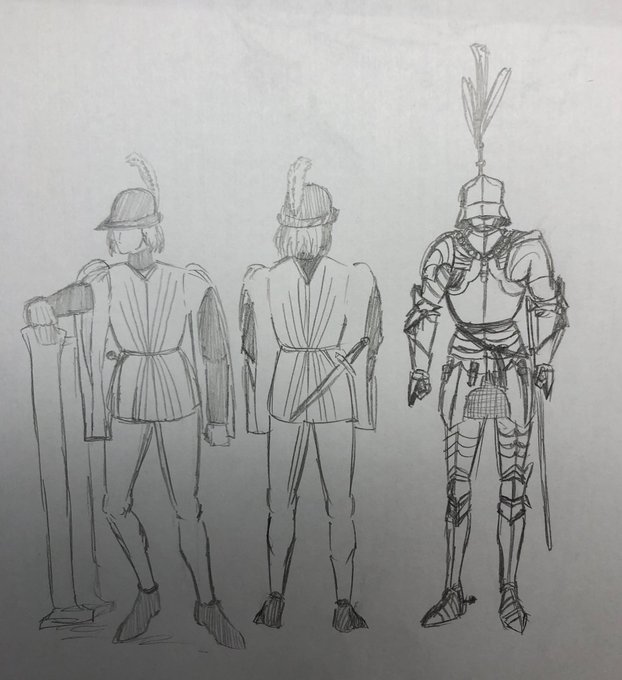 8 25 #歴史創作大交流会 主に中世後期からルネサンス期にかけての兵士達を題材に、rkgkレベルのアナログ絵をガリガリ描いてます たまに日本中近世の甲冑絵も描きます 23/03/02 01:00