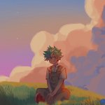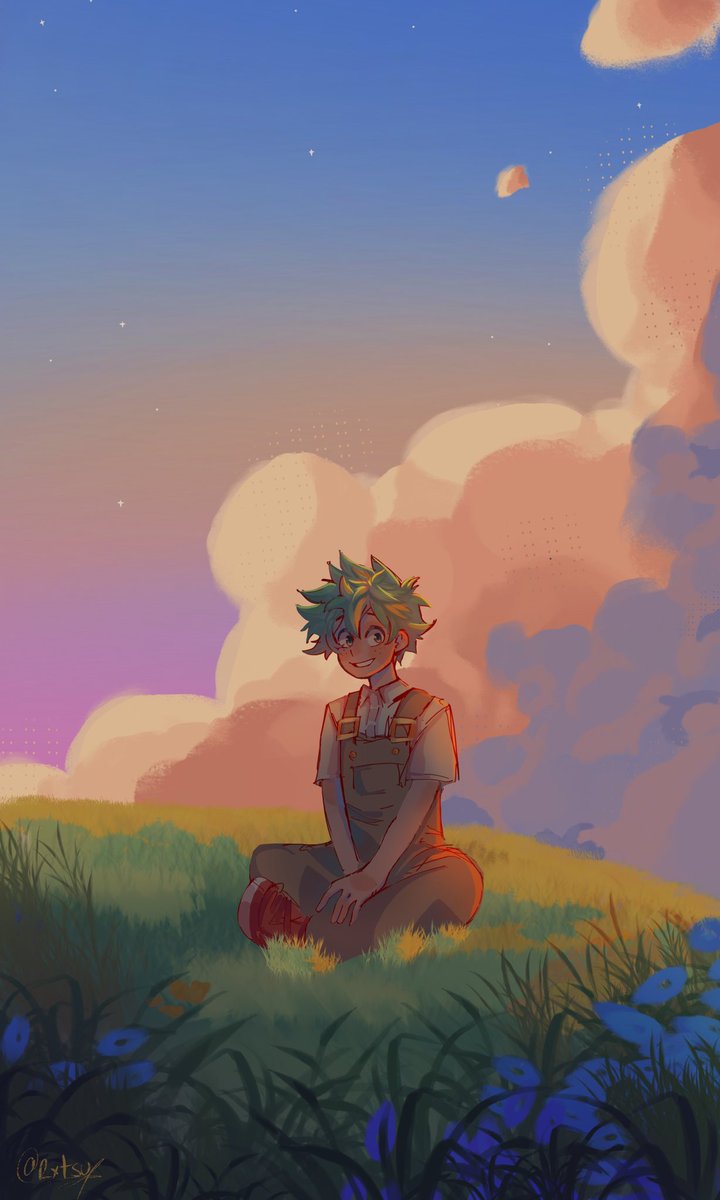 Finalmente pude darle color y fondo a este bello deku, hacer nubes y pasto como me encanta, es muy relajante para mi ansiedad #IzukuMidoriya#deku#BNHAfanart