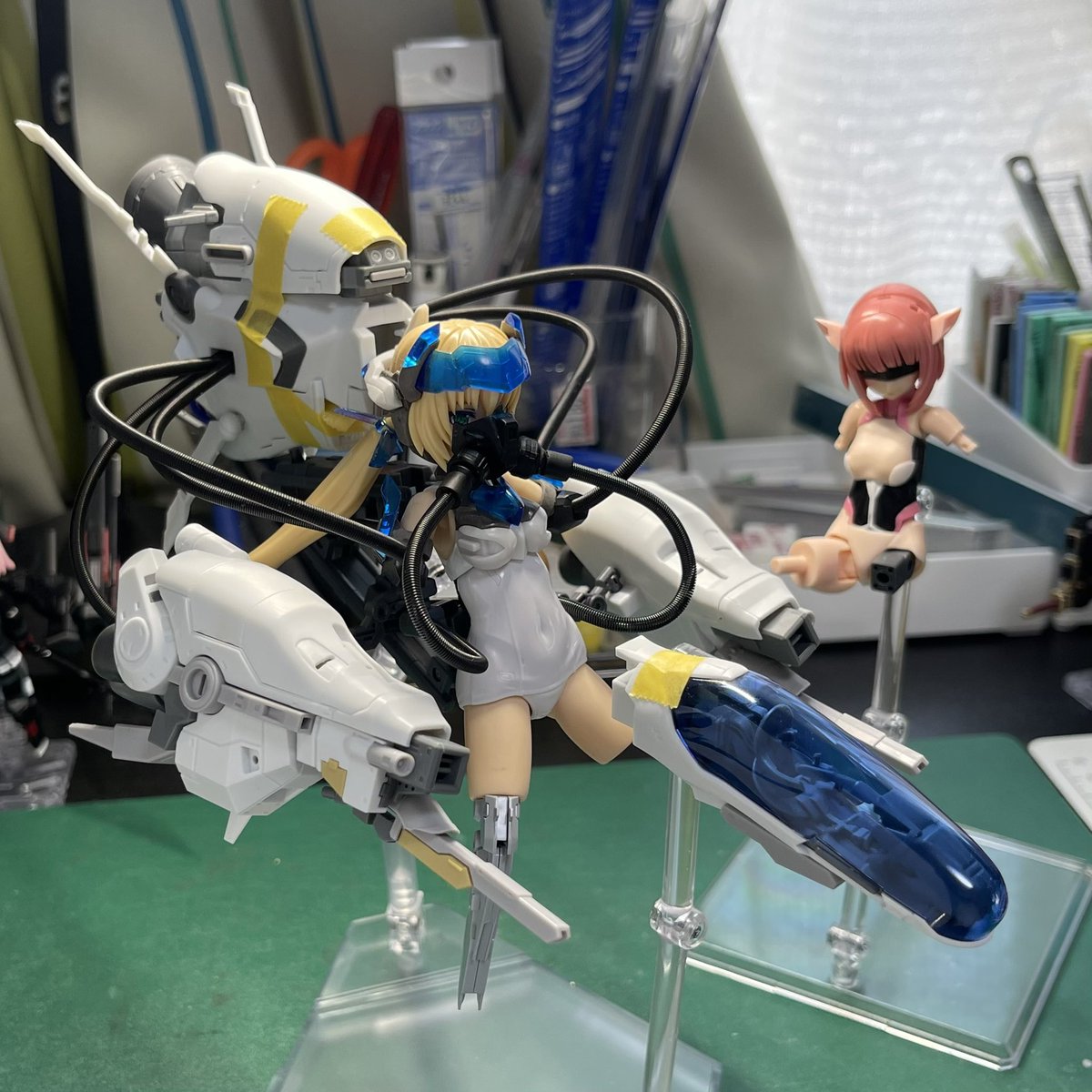 1 6 イメージ仮組。 14歳幼体固定オマージュから脳死で愛花を使おうとしてたけど、色や装飾的にフレズヴェルクアーテルでも良い気がしてきた。 #rtype #メガミデバイス #フレームアームズガール 22/08/07 16:44
