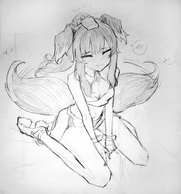 #ブルアカ #イラスト #ヒビキ 撫でられて尻尾ブンブン振ってるヒビキの下書き