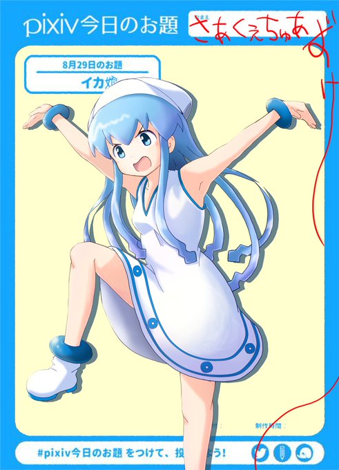 10 21 荒ぶるイカのポーズ、適当に完成w なんとか今日のお題間に合った~♪ 途中ネット麻雀してたけどwww #pixiv今日のお題 #イカ娘 #荒ぶる鷹のポーズ 21/08/29 23:29