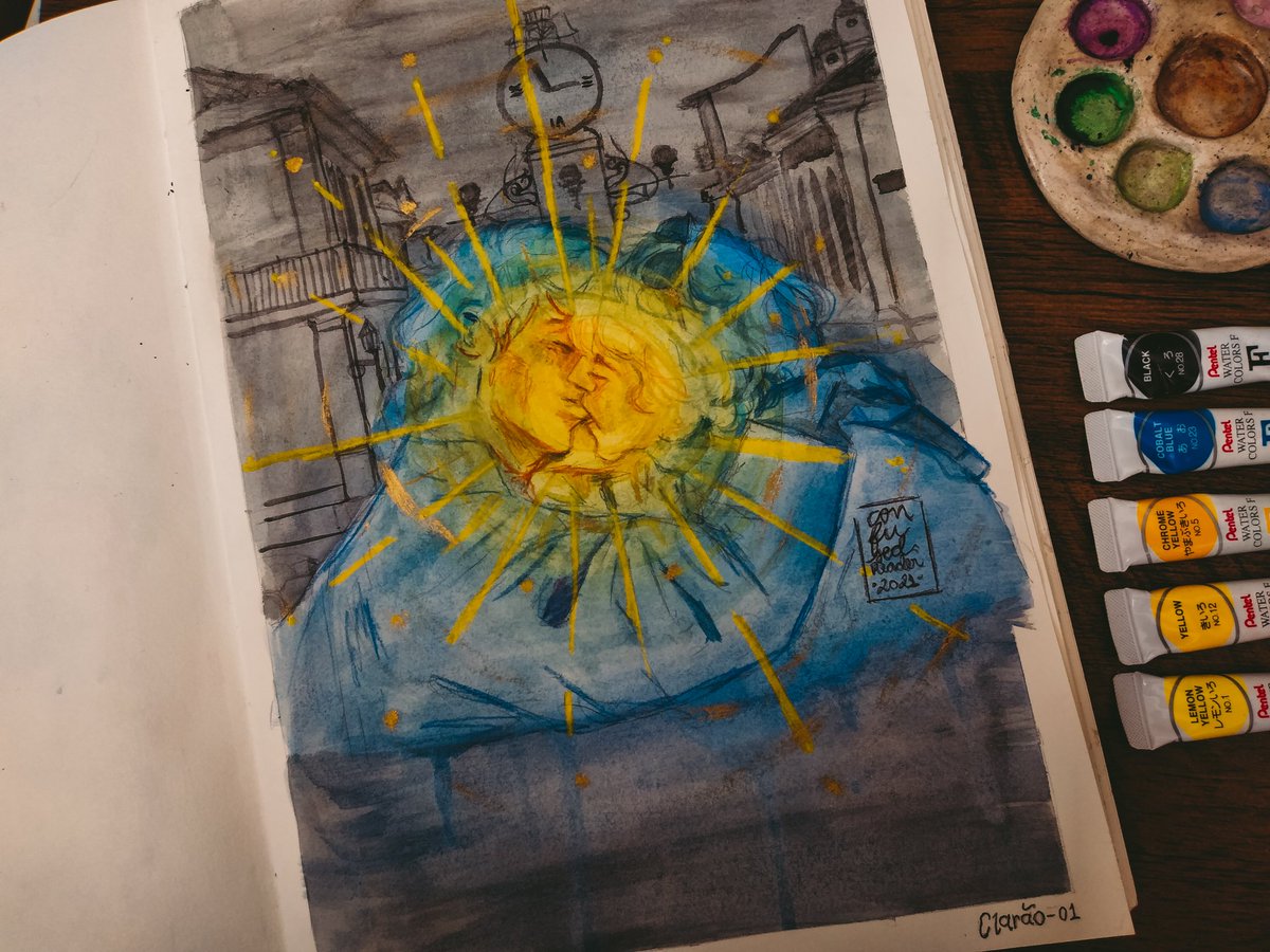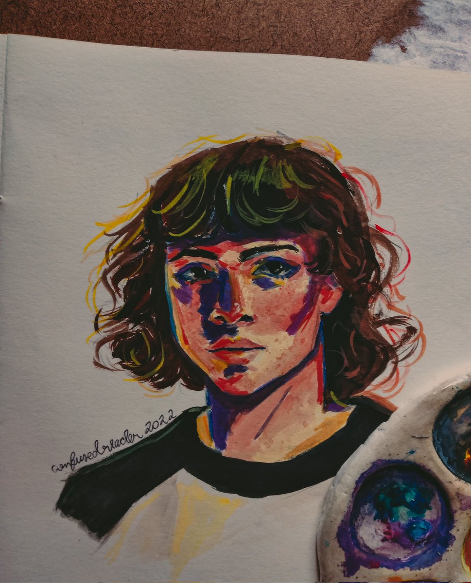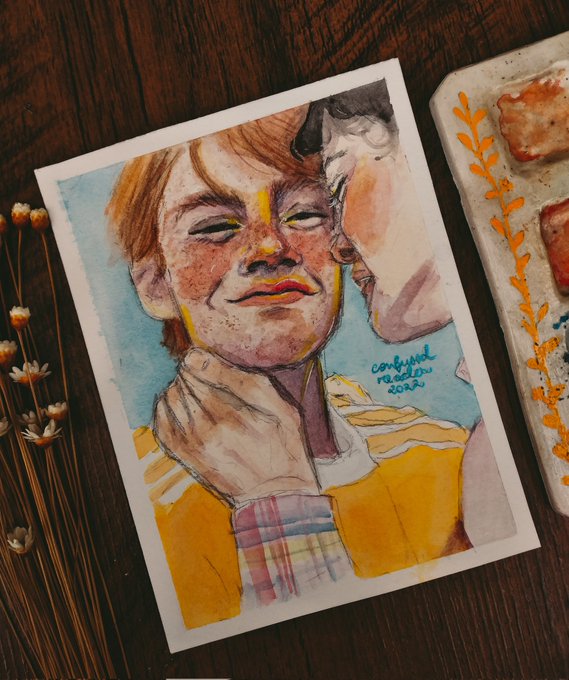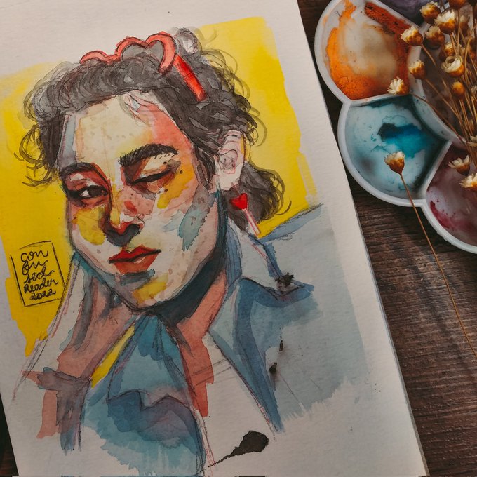 Fanart do Tao com aquarela "metálica" não dá pra ver direitinho, mas vou gravar um vídeo depois #HeartstopperNetflix #heartstopperfanart