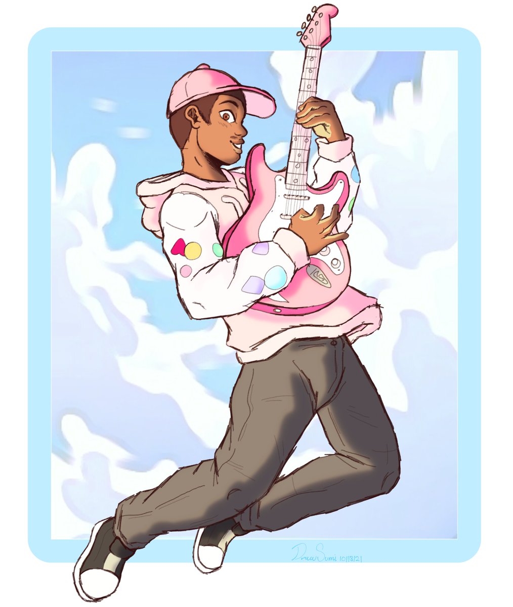 Day 18: Idol! Drew @shalfi_ because they inspire me to make nice music for fun and for myself. It's kinda messy since I have been busy today, but I still like it a lot! 💛✨💗 #art #Blacktober2021 #blacktober #digitalart #sketch