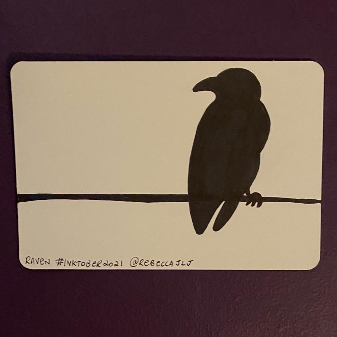 Raven. #inktober2021 Day 5. @Inktober #Inktober #Inktober2021Day5 #Inktober2021Raven #Stamp #Postcard