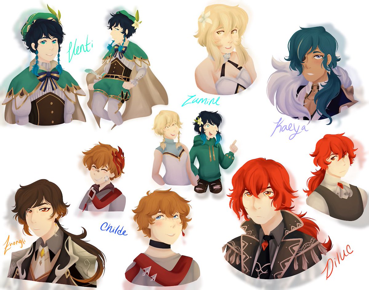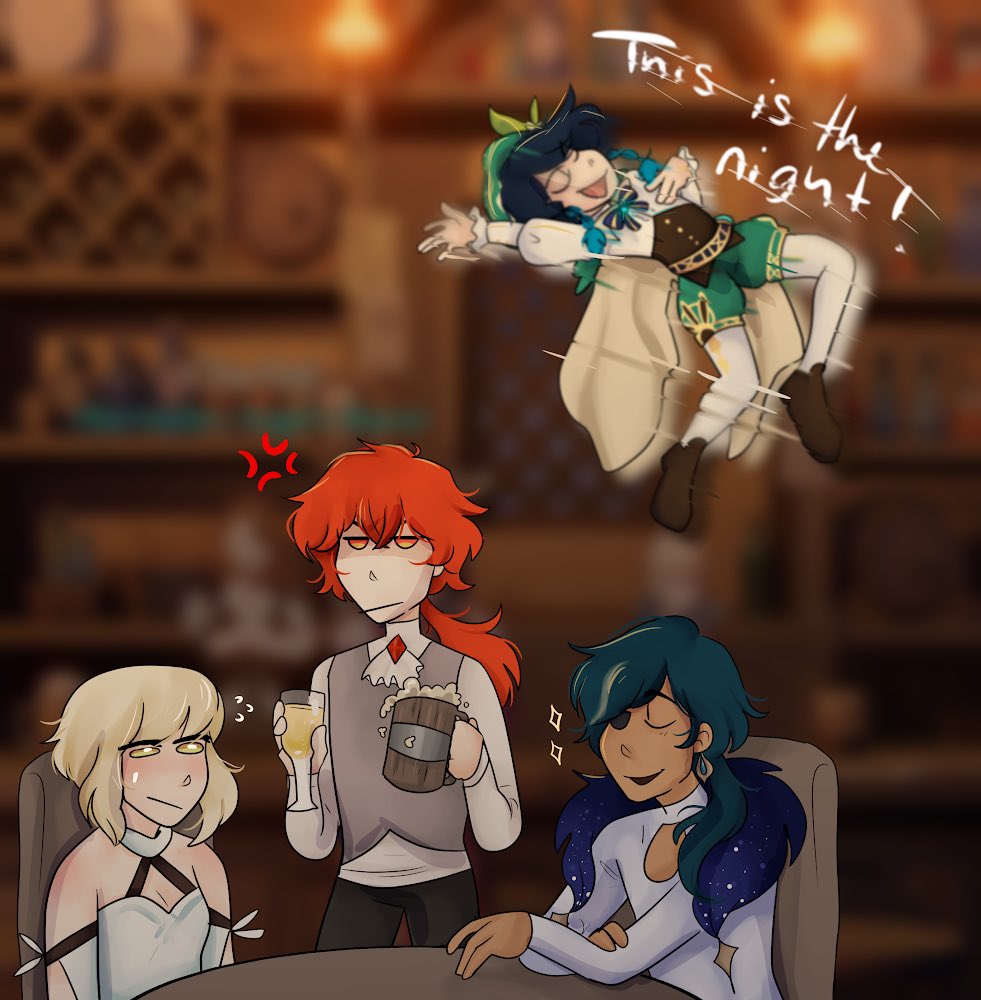 Dropping off some art and a meme I made. #GenshinImpact #genshinimpactfanart #childe #zhongli #diluc #kaeya #lumine #venti #anime #AnimeArt #genshinimpactart