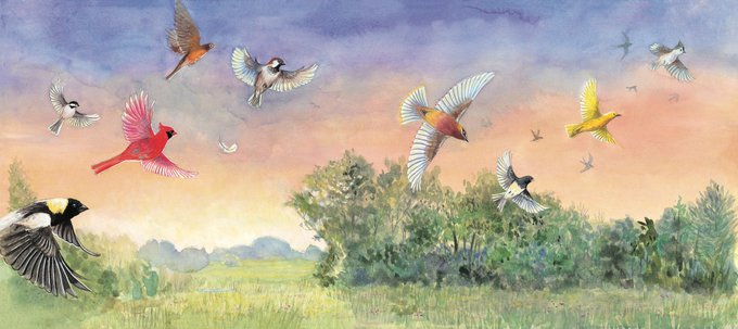 Hey #PortfolioDay! I’m Rebekah — an author/illustrator who loves to notice all the details of nature. 🌾 Rep: @PTerlip at @AndreaBrownLit 🕸 rebekahlowell.com #pb #mg #kidlitart #birdtwitter