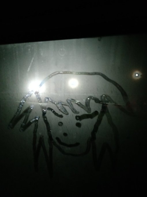 So one night it was cold enough for the windows to fog up and I drew Melody's head. #projektmelodyfanart