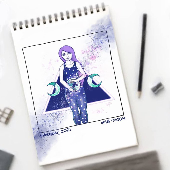 Day #18 - Moon of #inktober #inktober2021. Inspired by the moon cycles 🌔🌓🌒 #ipevo #inktoberday18 #fyp @ipevo @inktober