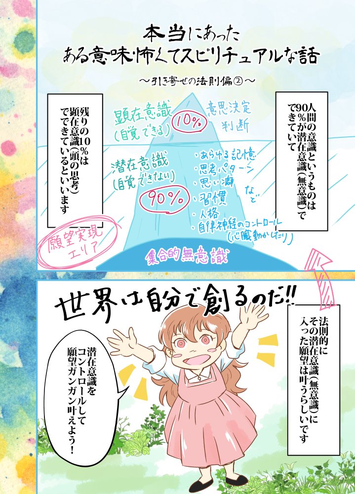 #本当にあったある意味怖くてスピリチュアルな話 有名な、引き寄せの法則編② 脳(無意識)をコントロールして願望を叶えるという仕組みです。 ホラー部門ランキング1位ありがとう👏 #本スピ #アトリエの系譜 #漫画が読めるハッシュタグ